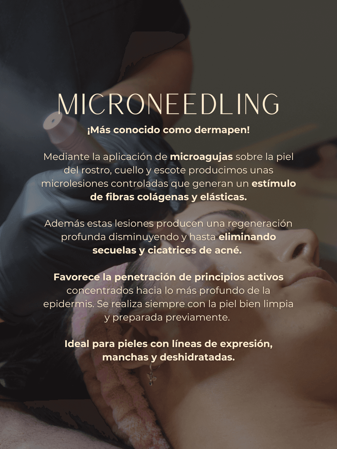Es un tratamiento que utiliza microagujas para crear microcanales controlados en la piel. Esto estimula la producción de colágeno y elastina, renueva las células y permite una mejor penetración de activos específicos.